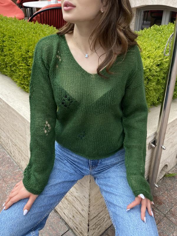 Светр oversize - з ним ви створите затишний та романтичний образ, водночас це незамінна та зручна річ у гардеробі. Відмінно поєднується з сукнями, спідницями, брюками та джинсами. Светр сплетений вручну. Повністю натуральний склад. Інструкція з догляду: ручне прання в теплій воді з рідким засобом, не віджимати і не сушити в пральній машині, не викручувати при ручному віджимі. Сушити у розкладеному вигляді на горизонтальній поверхні.