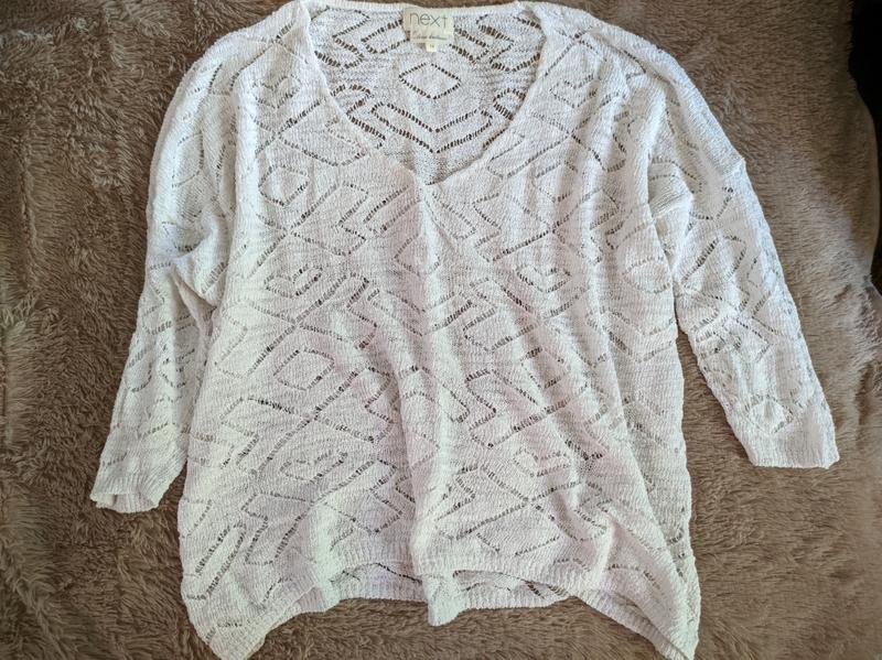 Свитер оверсайз со спущенными рукавами, можно носить как накидку. Достаточно большой вырез. Длина- 58 см ( бока длиннее от переда)