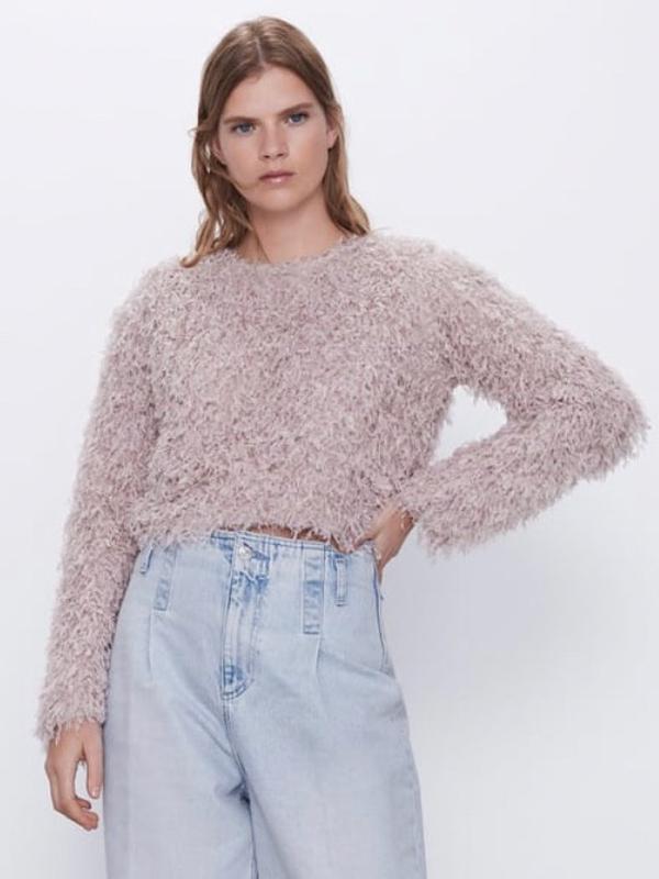 Zara жіночий короткий светр з ефектом пір'я на весняний та осінній сезони. Круглий виріз, довгі рукави. Колір: пудрово-розовий Розмір: L {довжина - 44 см. ширина - 48 см. рукав від горла - 70 см.} маломірить на - М. Викуповую та доставляю в Україну брендові речі з будь-яких офіційних сайтів Європи та США: ZARA, Mango, Mangooutlet, Massimo Dutti, Веrshka, Pull and Bear, H&M, Calvin Klein та інших. Доставка: !Можливе відправлення накладеним платежем!