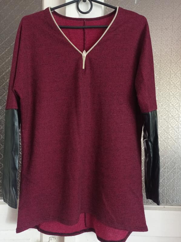 Продам женскую удлинённую кофточку с кожаными рукавами, в хорошем состоянии.