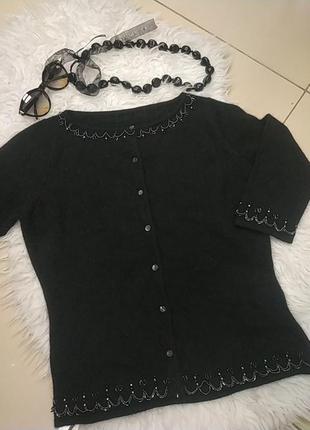 мила м'яка затишна кофта з ошатними елементами.Заявлений 16 розмір.Тягнеться.Підійде і на менший розмір,звіряємо виміри Нова,без паперової бирки. ПОГ50 ПОБ48 Рукав41 3/4 Длина58 Гудзики растегиввются.