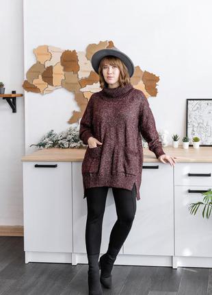 Туніка, розмір L-3Xl Подовжена спинка, вільний крій, опущена лінія плеча Склад: вовна 60% акрил 20% меринос 20% Можлива в розмірах від S до 5XL. Ціна 880