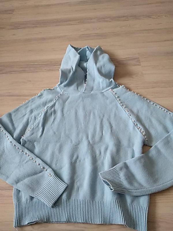Невероятно красивый свитер небесного цвета. Новый,без бумажной бирки. Бирки с составом нет,на ощупь кашемир и эластан. Длина 51,пог 50,рукавот горловины 75. Очень яркий и красивый.