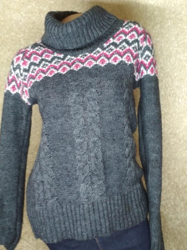 Классный свитер на зиму. Красивая вязка. Красивая расцветка. Состояние отличное, катышек нет,затяжек тоже.