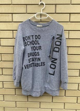 Очень комфортная мягкая тёплая кофта свитшот , приятно к телу, смотрится очень интересно и стильно с актуальной надписью и карманом декоративным на цепочке