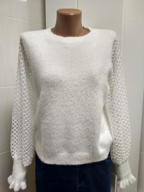 Суперовые мягкое свитера альпака Нарядные рукавчики Рукав мочно подворачивать В наличии белый, черный Длина 50 Пог 48