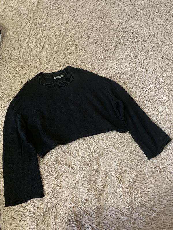 Чёрный кроп-топ объемного фасона с широкими рукавами