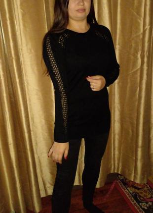 удлиненный свитер с красивыми рукавами