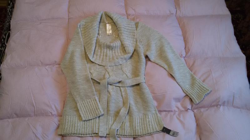 Новий цікавий ,подовжений светр з поясом