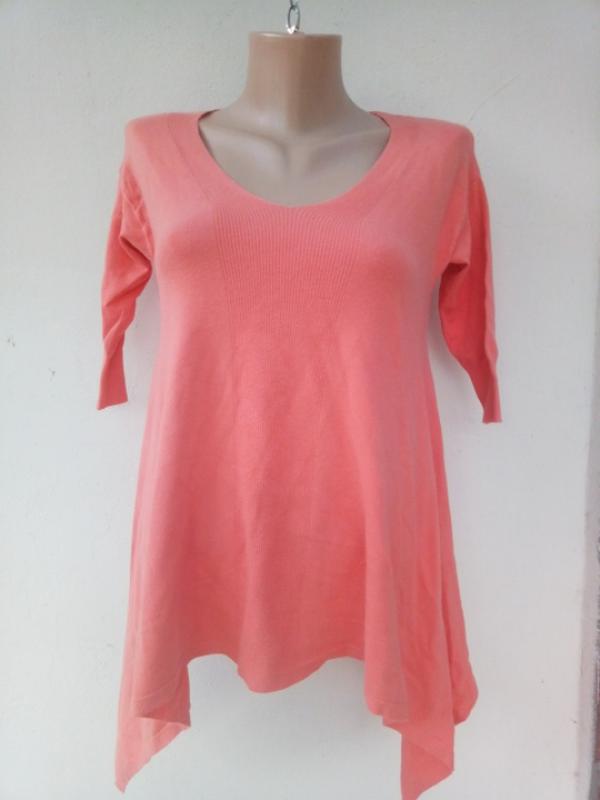 цвет морковный, размер 36-38,стрейч, замеры:рукав от горловины 41, длина перед60, длина по бокам74, грудь 39-47,бедра53