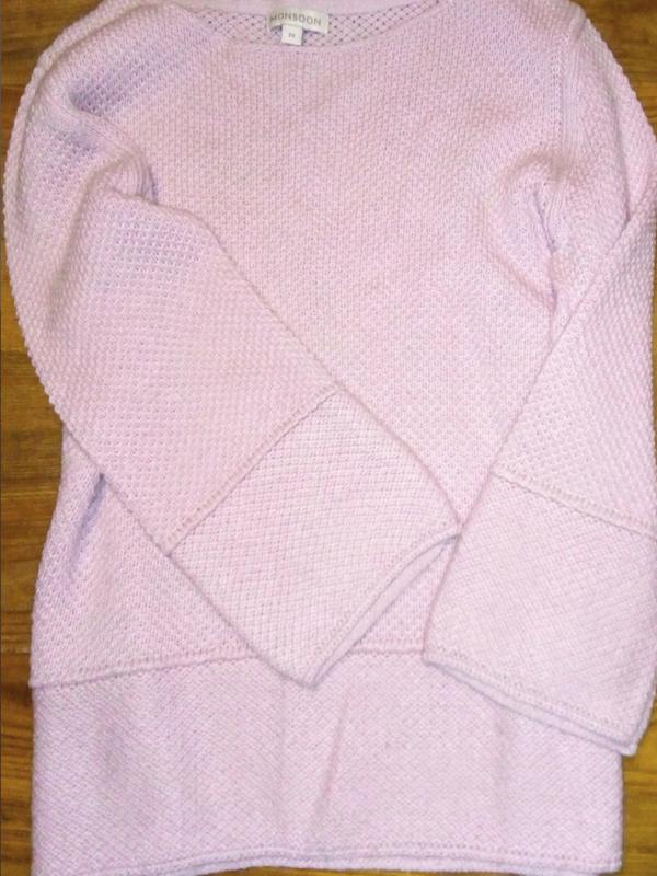 Свитерок марки Monsoon Очень красивый,нежный цвет, интересная вязка.. Состояние идеальное! Размер указан М,сядет хорошо на S/M Отправляю по Украине!