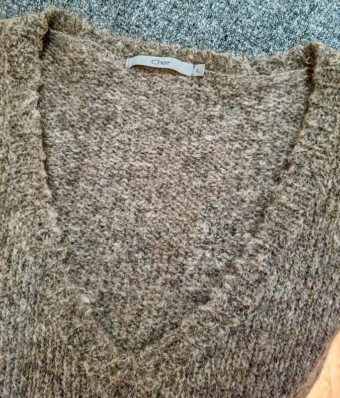 Длинный свитер или короткое шерстяное платье от той самой Шер. 50% шерсть, 24% лён и 20% полиэстер. Нарочито грубая вязка. Пушистая, ворсистая ткань. И пуговицы из натурального перламутра. Крайне необычная вещь. Новая. Не носилась. Замеры: плечи - 44 грудь - 52 талия - 44 длина по спинке - 75