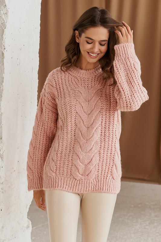 Свитер крупной ажурной вязки арт. v523210, пудровый