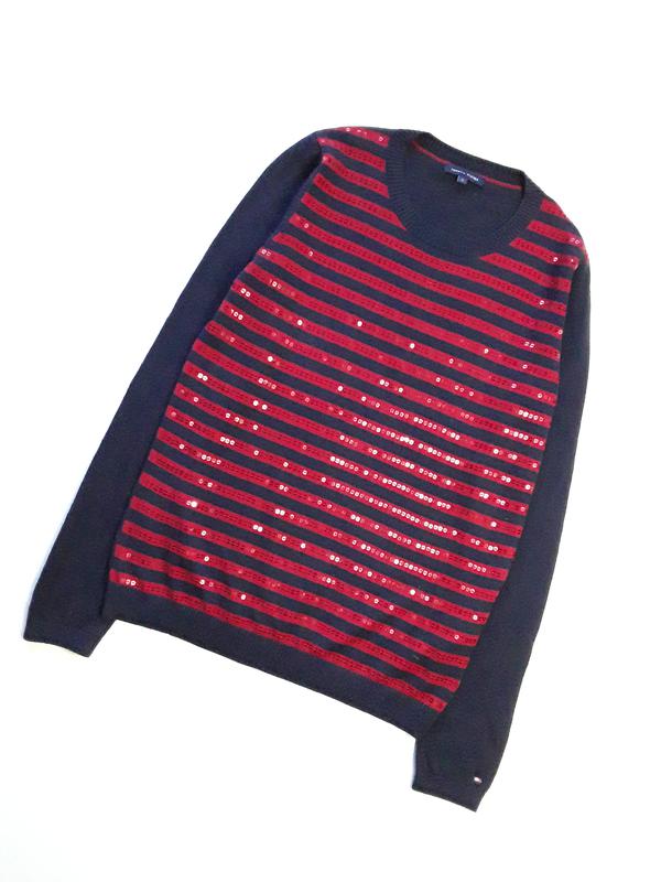 Интересный свитер Tommy Hilfiger Перед украшен пайетками Размер S Пог 45 см Длина 63 см Рукав 65 см Плечи 36,5 см 56%wool 44%cotton