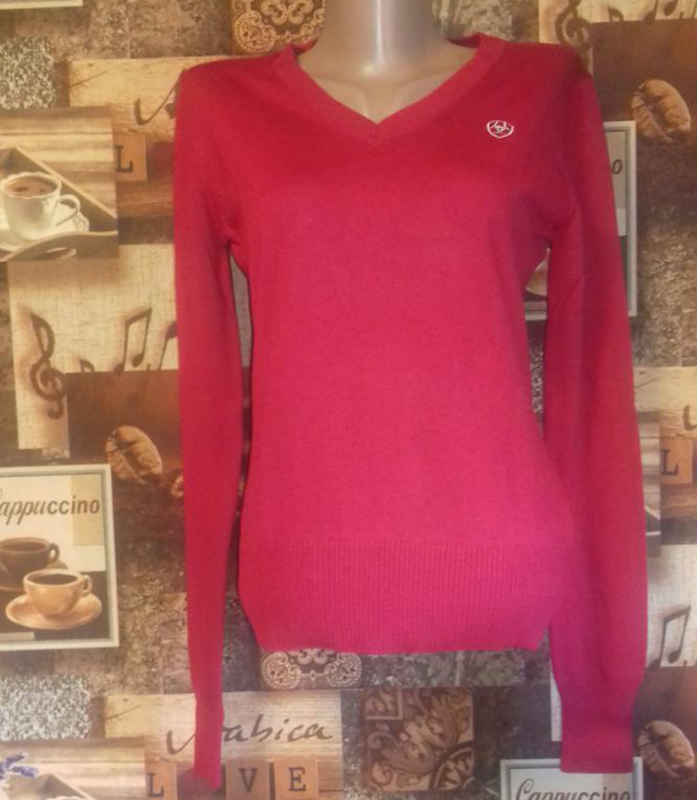 Свитер ARIAT,p.M,50%мерино шерсть/50%акрил.Состояние новое,этикетки нет.Цвет класический красный.Замеры:пог-47см,пот-42см,низ-40см,рукав-66см,плечи-38см,длина-60см.