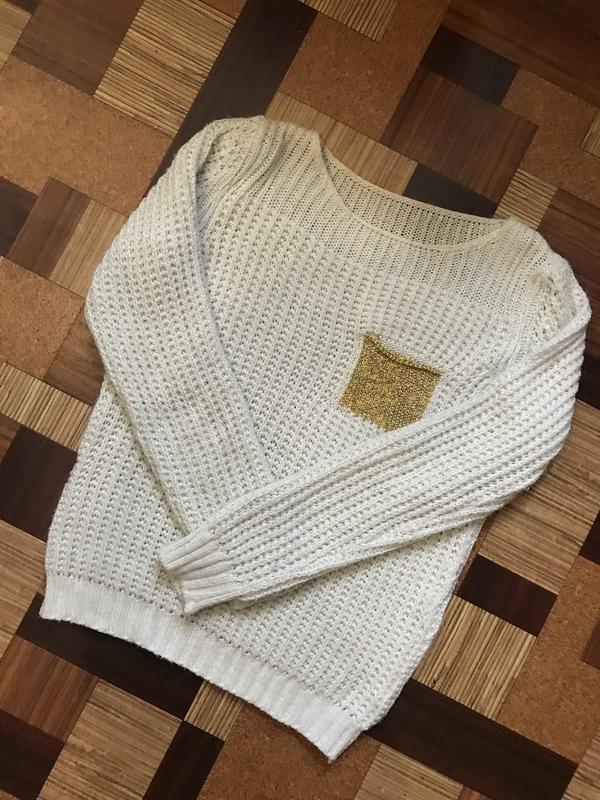 Вязаный белый свитер с маленьким карманом в отличном состоянии. Возможен торг