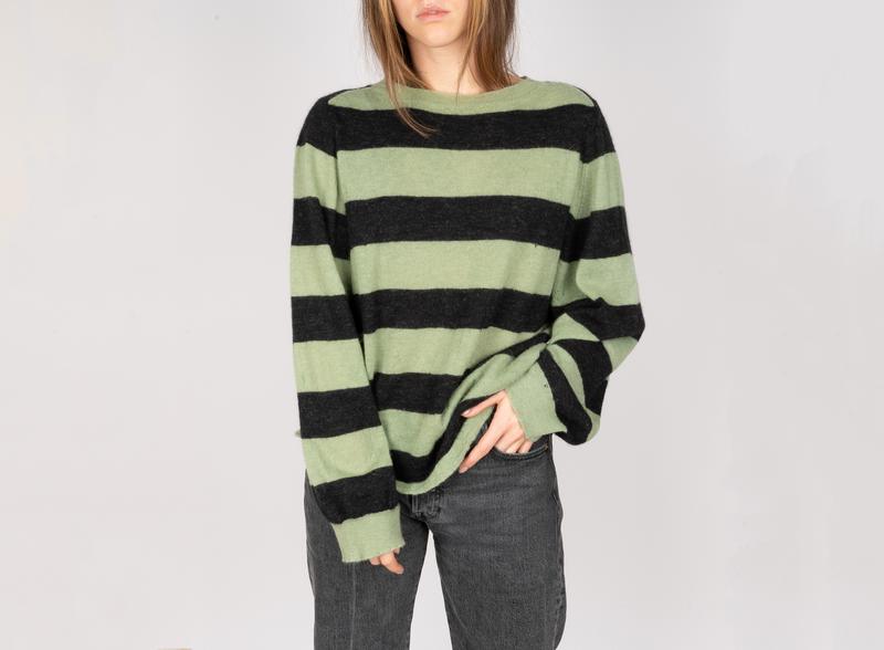 Humanoid 55% alpaca 10% wool size L made in Italy дирки и затяжки - искусственные(такий свитер в оригинале) Полуобхват груди - 59 см Длина рукава - 73 см(от шеи) Длина по спине - 63 см