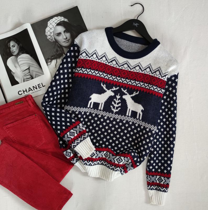 Теплий светр вільного крою з принтом, тканина 50 % котон, 50% акрил, розмір М, ПО грудей 50 см, довжина 60 см, довжина рукава від горловини 75 см