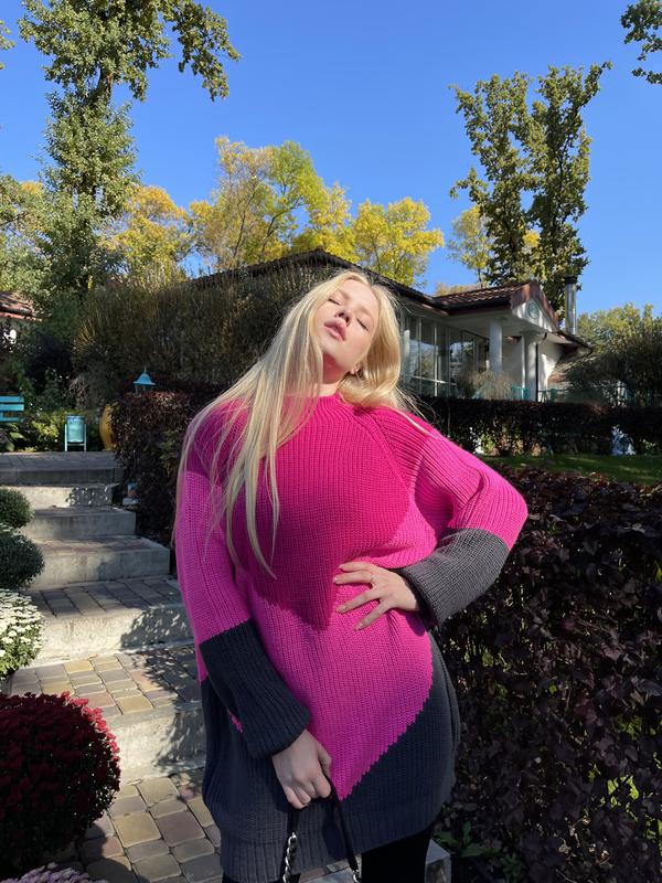 Удлиненный свитер в трендовых цветах сезона. Очень тёплый. Размер универсальный.