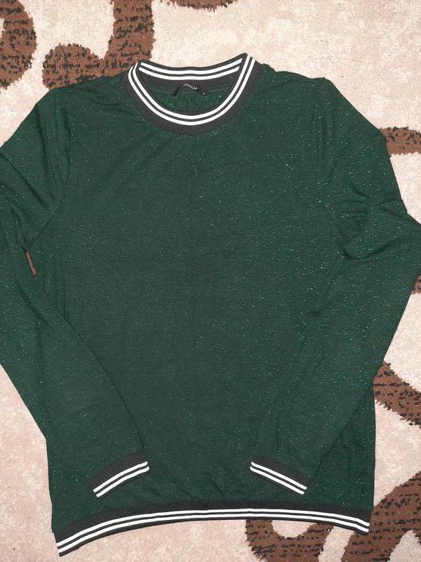 Продам в идеальном состоянии кофту одета 1-2 раза. Красивого болотного цвета с люрексовой ниткой. Размер С но я носила у меня М. Ткань приятная не колится.