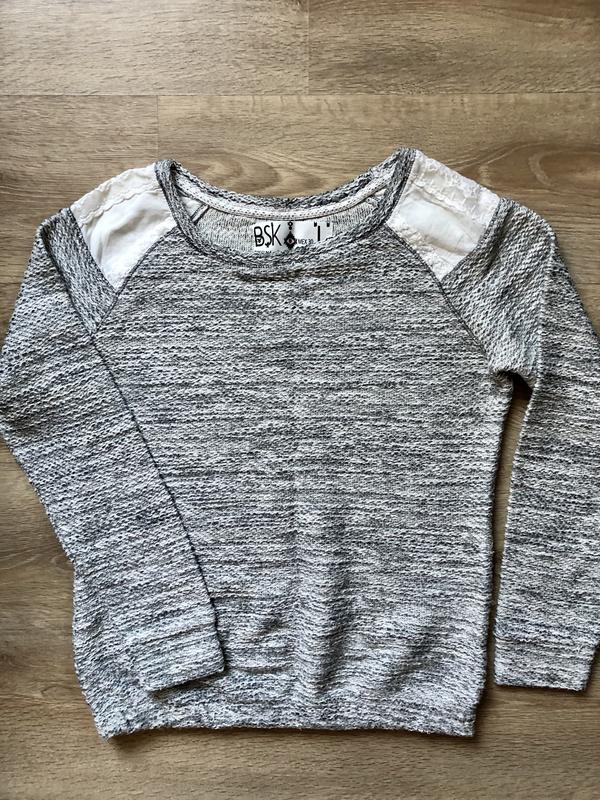 Сіра кофта фірми bershka, розмір L(30). Довжина 58 см, об’єм грудей 100 см, довжина рукава 66 см, низ кофти на резинці.