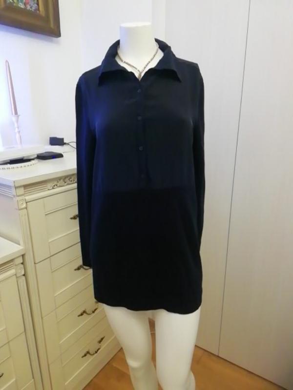 Сорочка-светр, сорочка 100%шовк,светр 100%вовна.Розм.36,дл.загальна дл. 70,до талії шовк 36,5 див. Рукав шерсть 61 см, ПОГ 49 см, ПОТ 48, ПОБІДИ 49,трохи тягнеться. Шерсть тонка, але щільна. Шовк щільний, не тонкий, не просвічується. Колір темно-синій, ближче 1 фото. Не носився, в ідеальному стані.