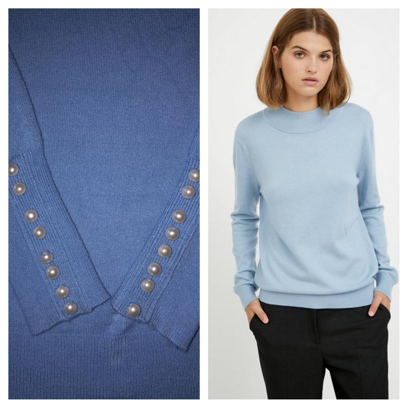 НЕЖНЫЙ ТОНКИЙ СВИТЕРОК С ЖЕМЧУЖНЫМИ ПУГОВИЦАМИ.КРАСИВЫЙ НЕЖНЫЙ ЦВЕТ.ХОРОШО ТЯНЕТСЯ! ПЛЕЧО 32 см РУКАВ 56 см ПОГ 44 см ДЛИНА 59 см
