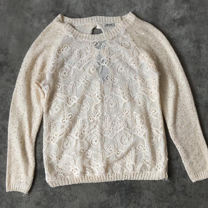 Гарний светр новий заді красива спинка розмір M-L колір жовтий з блистітками