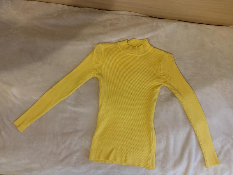 Гірчичний гольф прямого силуету, виготовлений з м’якого трикотажу. Розмір s-m.
