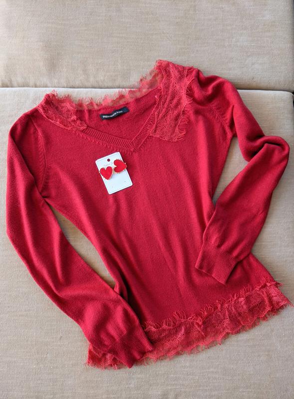 Тоненький мягкий свитерок дополнен ажурным французским кружевом ❤️❤️❤️ Серьги гвоздики в подарок 🎁 Садится по фигуре... подойдёт от xs до m