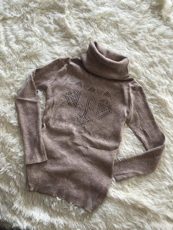 Свитерок в рубчик с принтом. Длина по спинке без горлышка 57 см, рукав 53,5, пог 42,5 Размер S Состояние идеальное. Материал мягкий к телу