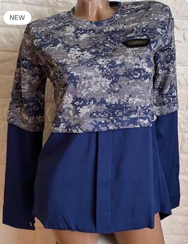 Розмір=наш с м С йде на 42_44 М йде на 44_46 Довжина 105см Опис====== кофта імітація двійки, тканина Ангора та креп шифон, розмір в розмір