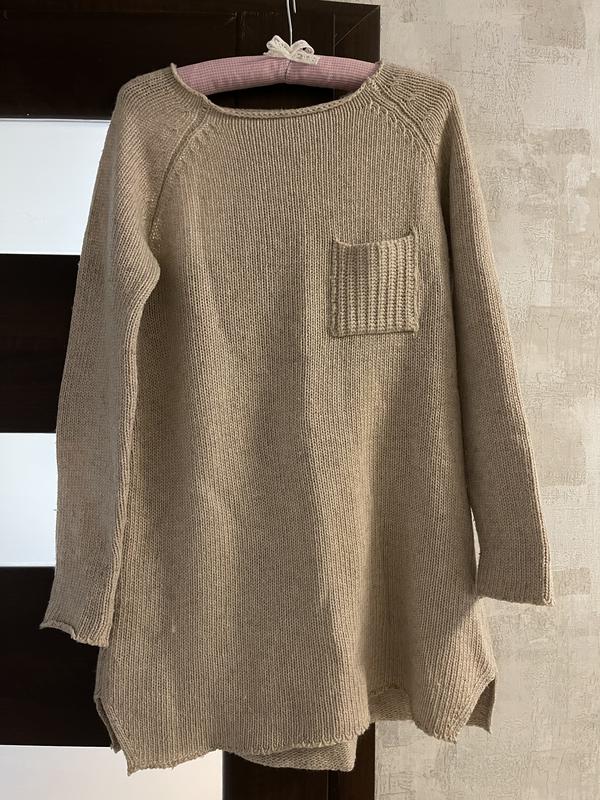 Вязаный удлиненный свитер, сзади крутая нашивка Микки Мауса Размер S