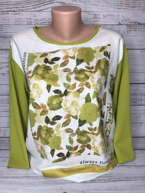 Кофта блуза вказаний Розмір М, але йде на М/L 44-48 Ширина під руками 52,5 Довжина 66 (зад 75) Довжина рукава 3/4 по внутр шву 31,5
