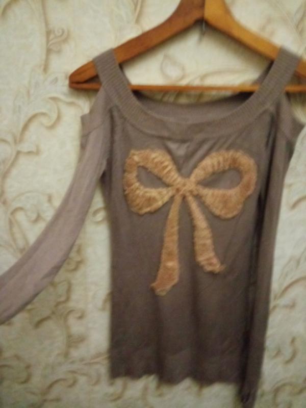 мягкий , приятный материал,бирка срезана,скорее шерсть с вискозой, открытые плечи, аппликация из мягкого капрона