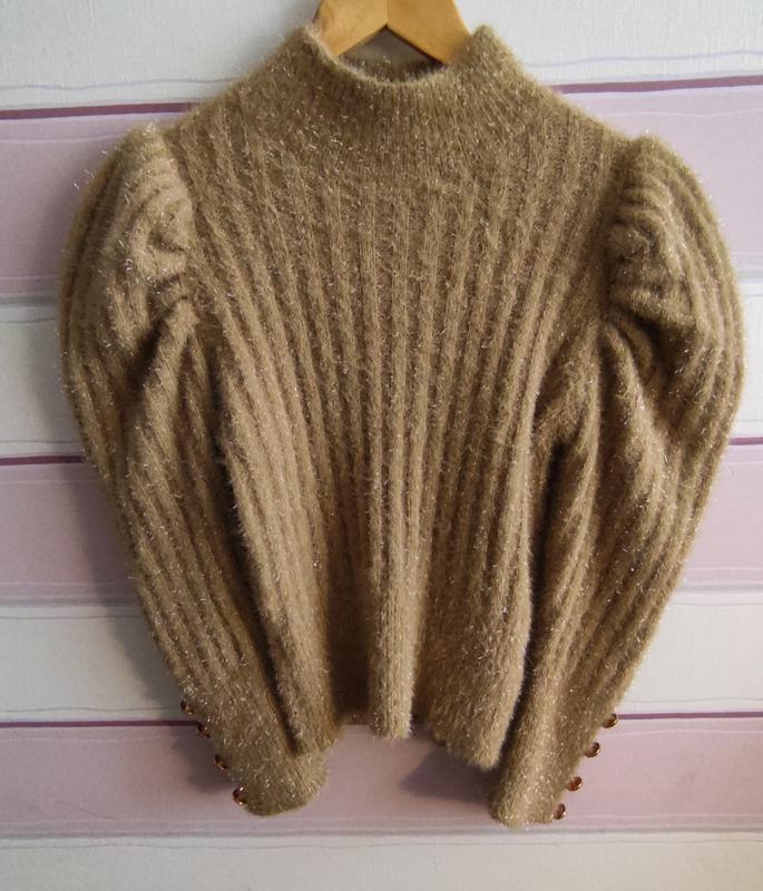 шикарный свитер с люрексовой нитью, мягкий идеальное состояние, приятный на ощупь. смотрится супер. длина от плеча 49 см. длина рукава от плеча 63 см. подмышки 44 см. хорошо тянется