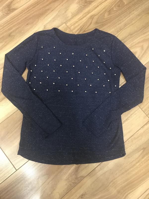 Темно синя. Бусінки всі на місці, дуже крепко пришиті. Розмір 46.