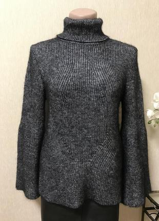 М'який теплий светр з розкльошеними від ліктя рукавами в ідеальному стані. Розмір м , колір графіт. Довжина 60 Рукав 60 ПОГ 44+ Плечі 35-40