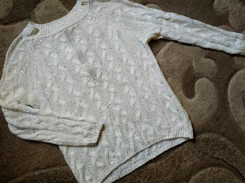 Ширина под руками 50см. общая длина 59 см. рукав реглан 70 см. С паетками.