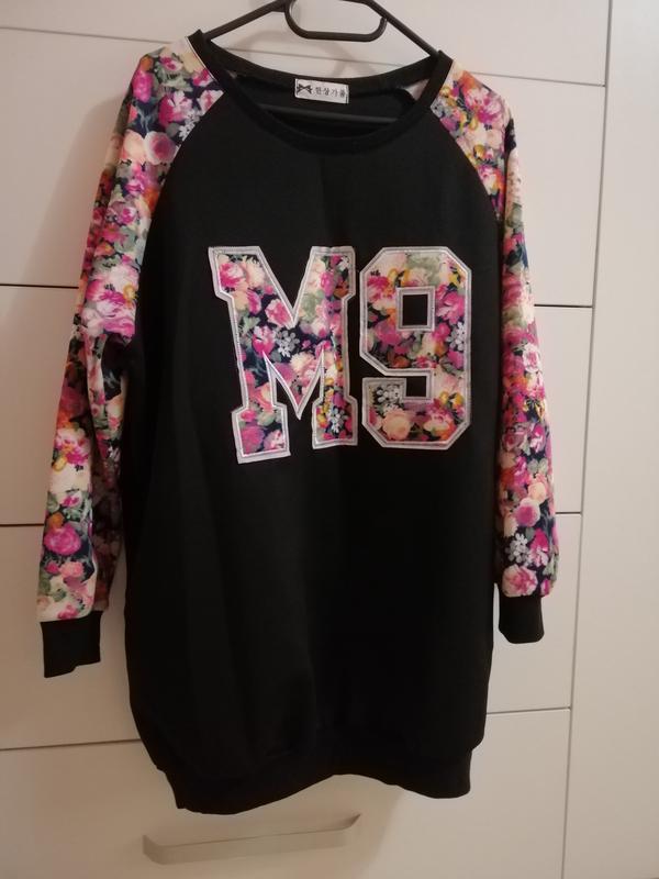Подовжена оверсайз кофтинка, бокові кишені та квітковий принт. Стан новий. Без бірки. Довж 80