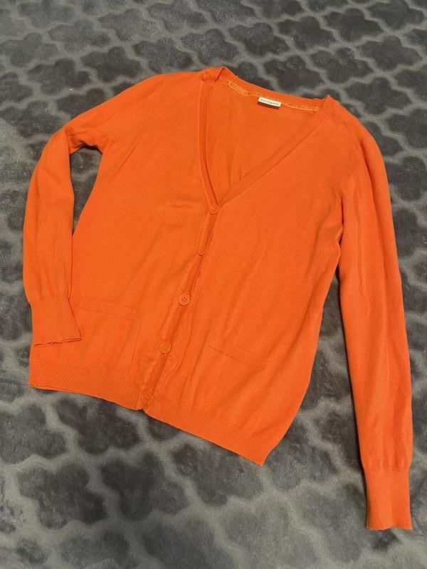 Фото На теле нет) На примере) замеры на фото)тянущий вырез v-образный, необычная длинные манжеты в рубчик, застегивается на пуговицы,фасон-свободный по фигуре )из нюансов-ушивашек на фото указано и зашитая дырочка (не критически, Цену учтены, продается так как нет возврат и без притензий) Подойдет на см европейский ориентуйтесь по замерам Рукав 58см) Пог 45 см) Плечи 38 см) Оранжевый цвет буквально ворвался в самом разгаре весеннего сезона и прочно занял свои позиции, наверное, до самого конца года! Каких только оттенков не увидишь на представительницах прекрасного пола: начиная от нежно мандаринового цвета и изысканного медового, заканчивая кричащим терракоторым и смелым ярко-морковным. Этот цвет продиктовал модные тенденции не только для женщин, но и для мужчин, хотя важным аспектом является то, что оранж нужно уметь носить и правильно сочетать с элементами гардероба и аксессуарами.