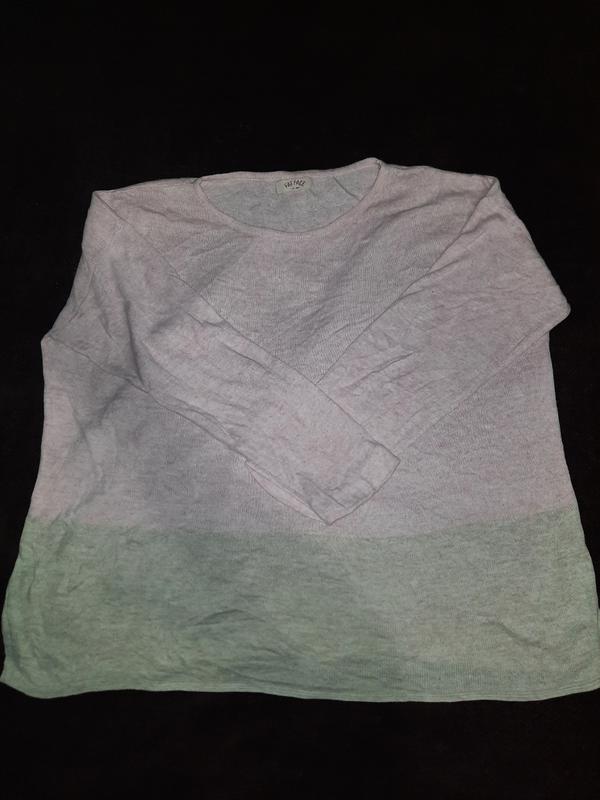 Свитер тонкой вязки на размер 56, удобный , приятный к телу. Ширина под мышками 66см, длина по спинке 60см.