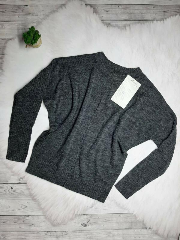 Новий светрик, оверсайз, з біркою, до стегон звужений. Розмір на бірці М, але можете пройти і на L. Модель "летюча миша". Довжина 64, рукав від горловини 73, ПОБІДИ - 44. 80 % - акрил, 20% - вовна. Тягнеться. Додаткові фото в лічку