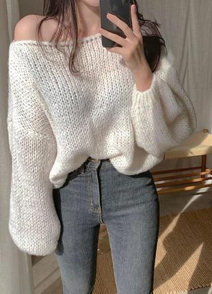 Стильний светр з преміальної пряжі. Затишний ,легкий і повітряний. Ручна робота. One size: Довжина 50-52см Ширина 60-65см Довжина рукава 62 см Можна зв'язати індивідуально по Вашим параметрам.