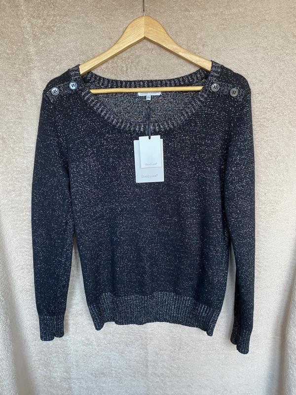 Чёрный свитер, с разноцветной ниткой люрекса! Длина рукава 62 см ПОГ 46см Длина 63см