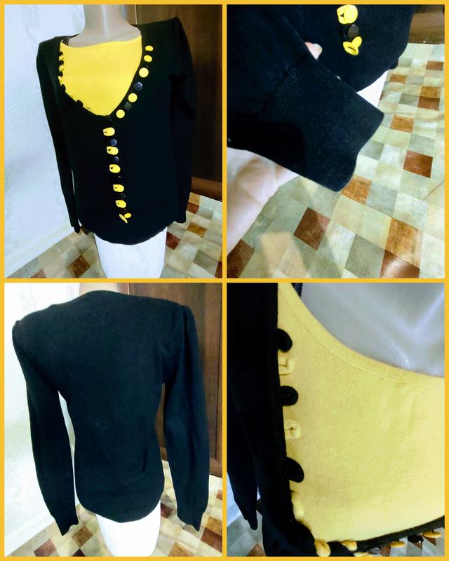Кофта розмір 46-48 см. Довжина 59 см, ширина плечей 37 см, довжина рукава від плеча 60 см,пів обхват грудей 43 см.