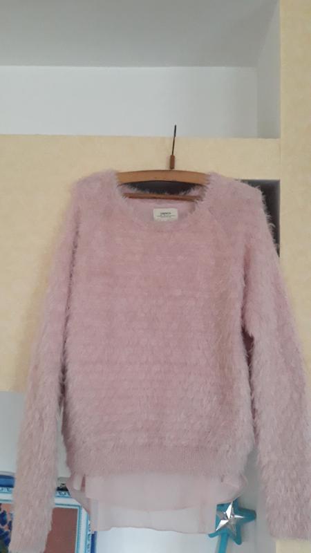 Свитер 46-48р. нежно - розового цвета на подкладке, реглан. Замеры: пог-50, длина-50, рукав от горловины -74, от плеча-50. Состав ткани: 77%-полиамид, акрил-23%, подкладка-100% полиэстер.