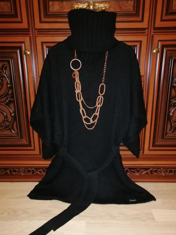 Состояние нового, очень красивая, стильная, необычная модель. Ворот на пуговицах, можно как большой воротник, можно, как ворот. Бока не зашиты, но по талии идет пояс. Теплый. Состав: 50% шерсть, 50% акрил. Фото сделаны с разных ракурсов. пр-во Англия, очень высокого качества. Замеры: Длина - 75 см Длина по линии рукава от ворота- 49 см Обхват по груди 106 -112 см талия обхват - 100 см Низ обхват - 112 см ворот длина 37 см