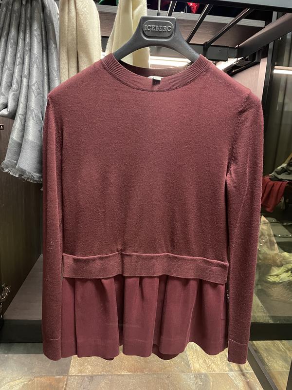 Бардовый тоникой свитер, хs. Состав шерсть, низ котон с шелком. Надет пару раз. После химчистки. Новый практически