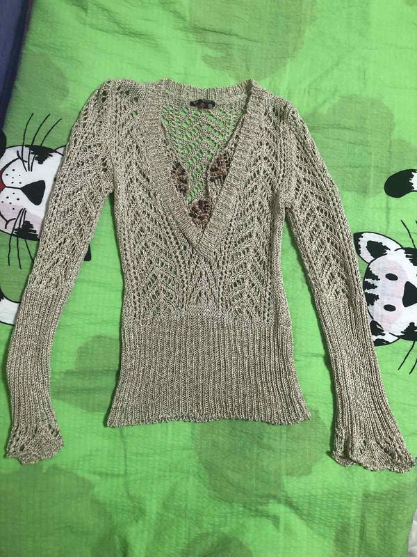 Ажурный свитер ago Geral Paris, розмер S, 42-44, c красивой вышевкой с натуральных бусин